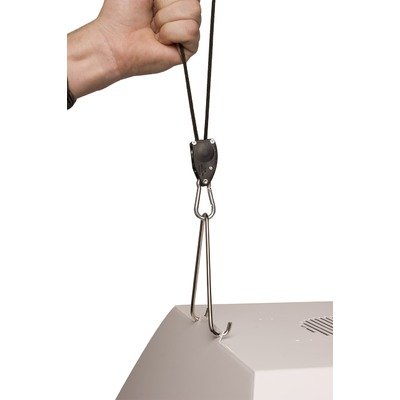 I love these hangers! I have 2 of the LED UFO Grow Lights in my grow tent and had suspended them using military grade zip ties. While that was more than enough to hold the lights it didn't offer me flexibility. I use these nifty hangers for my lights due to the fact that they are fully adjustable in SECONDS! If you are using them in tandem you can even hang your heavy carbon filters with these little guys. They come with 8 feet of rope, which is more than I would ever use. I doubled the rope up and used it incase the ratchet fails. The D ring clips work awesome and fit right to the D ring on my lights. I would give these handy little guys an A++! These are high quality tools that are useful for all sorts of things around the house, not just in the grow tent.